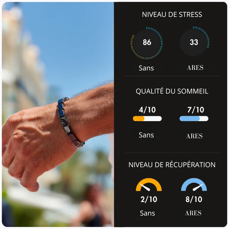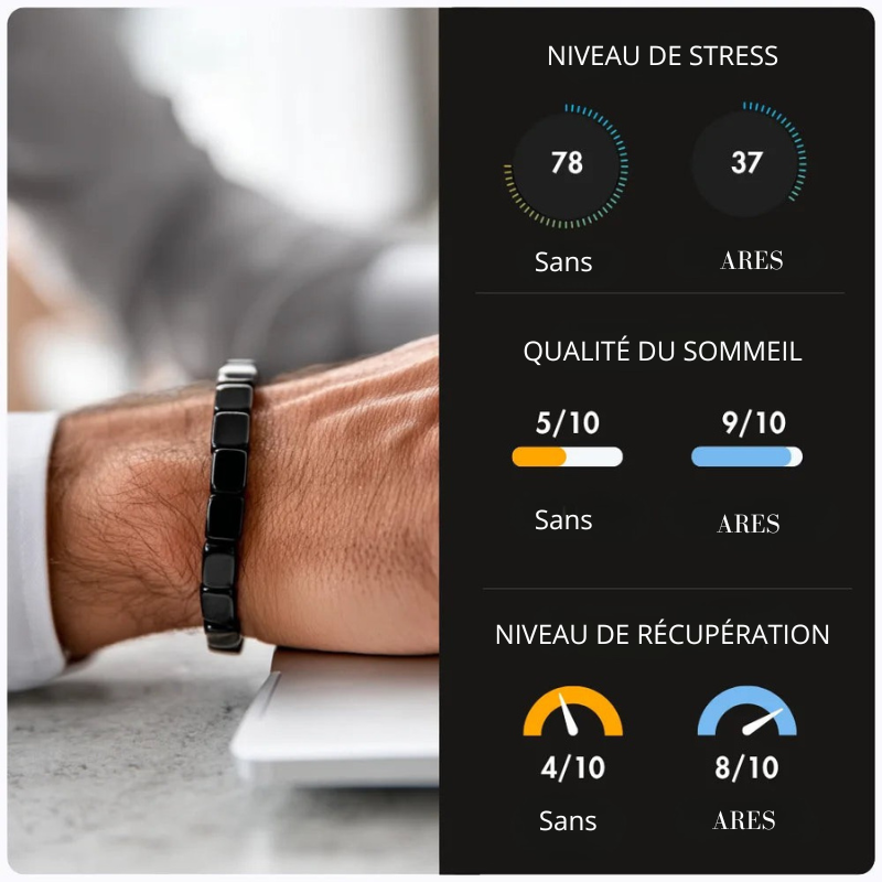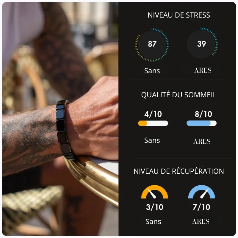 Dans une étude en conditions réelles avec trackers biométriques, nous avons mesuré les améliorations concrètes avant et après le port du bracelet ARES.